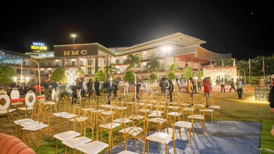 A sophisticated open-air space offering a perfect blend of charm and grandeur. Ideal for weddings, receptions, and lavish events, the HMC Front Lawn boasts elegant décor, ample seating, and a captivating ambiance beneath the night sky.